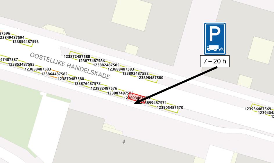 ter hoogte van de Oostelijke Handelskade 4 een gelegenheid voor het direct laden en lossen van goederen is gesitueerd, op parkeervaknummer 123893487573;