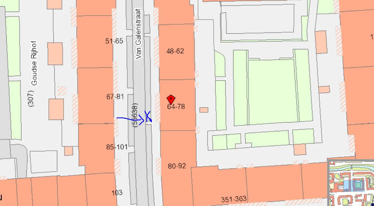 • tot het inrichten van een gehandicapten parkeerplaats aan de Van Galenstraat 64, Ter hoogte van pand nummer 64, door middel van plaatsing van bord E6 RVV 1990 met onderbord met vermelding van het kenteken van de auto van de aanvrager en aangevuld met een kruismarkering in het parkeervak.