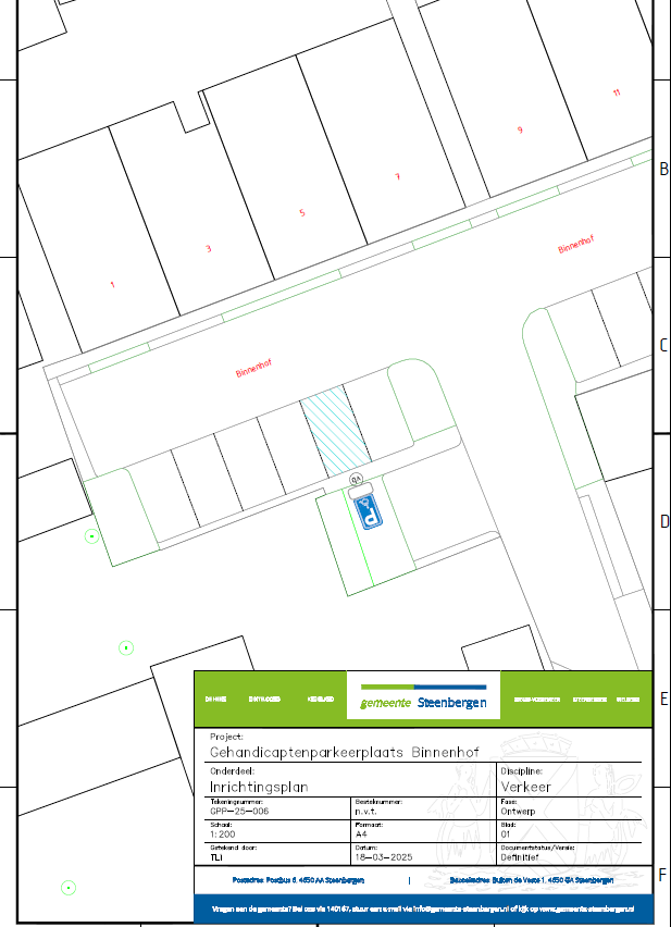 overwegende, dat een verzoek is binnengekomen van … wonende aan Binnenhof te Kruisland om een persoonlijke gehandicaptenparkeerplaats aan te leggen in Binnenhof, ter hoogte van 5.