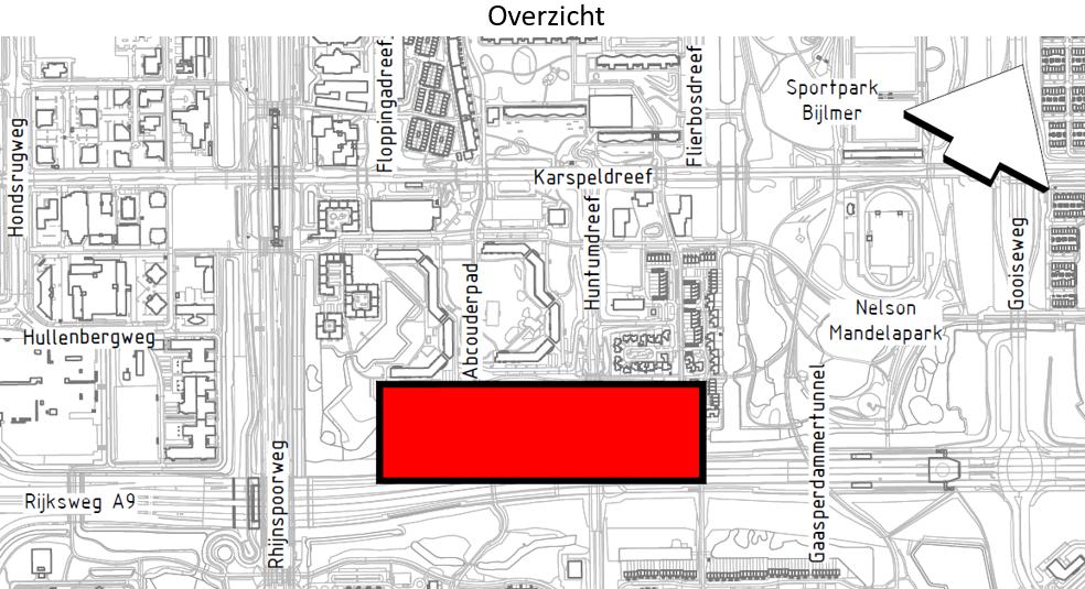 Door het plaatsen van verkeersborden conform model C21 van bijlage 1 van het RVV1990 in te stellen: Een geslotenverklaring voor voertuigen en samenstellen van voertuigen, waarvan de totaalmassa hoger is dan op het bord is aangegeven (10t) in het gebied dat omringd wordt door de A9, het spoor, het Bijlmerpleinpad en het Huntumpad.