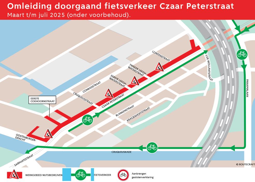 om (toekomstige)verkeersonveilige situaties zo veel mogelijk te voorkomen, mede gelet op de toenemende fietsintensiteiten de gemeente Amsterdam het trottoir en de verplichte fietspaden aan de noordkant van de Czaar Peterstraat, inclusief een deel van de Oostenburgergracht en de Eerste Coehoornstraat gaat herinrichten;