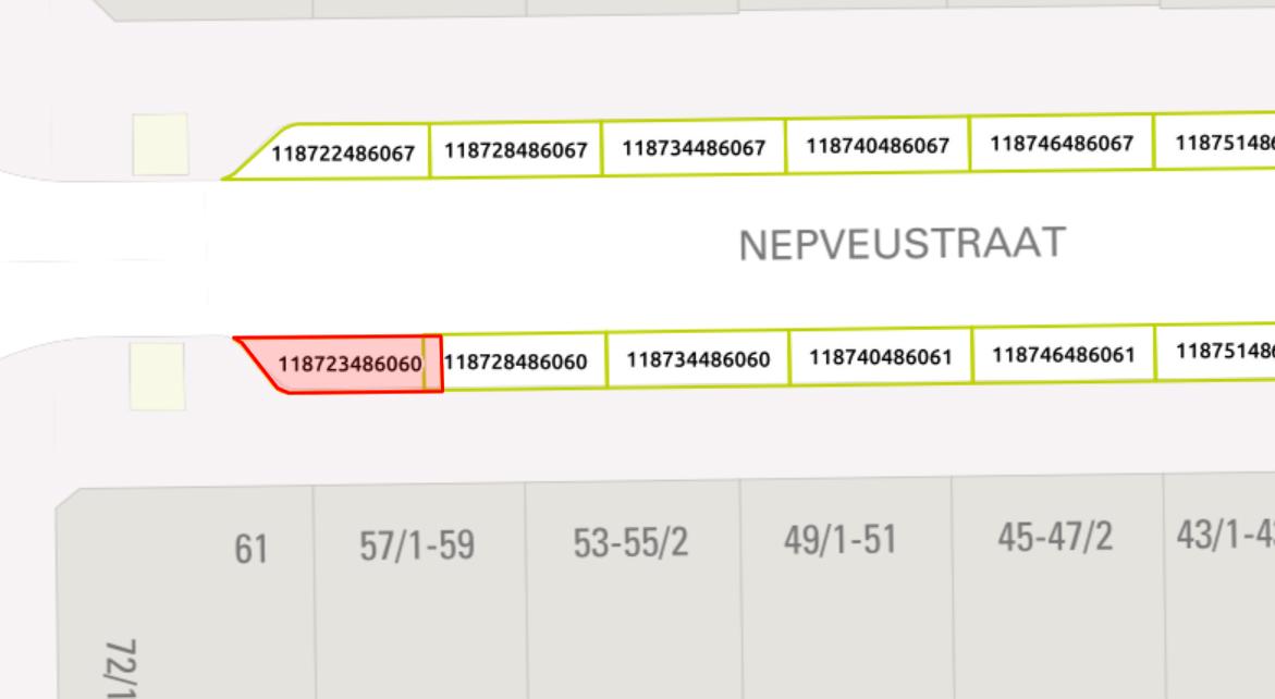 ter hoogte van perceel Nepveustraat 57-59 een gehandicaptenparkeerplaats op kenteken is gelegen;