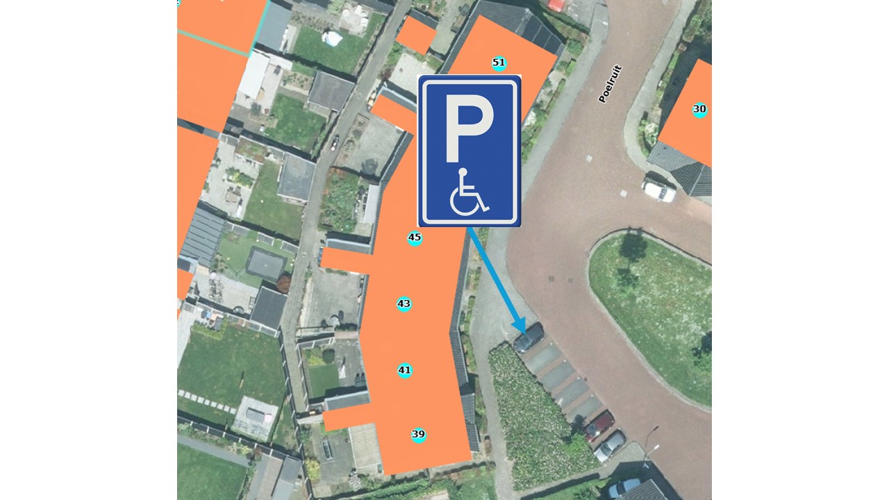 dat één van de bewoners aan de Poelruit te Brummen een gehandicaptenparkeerplaats op kenteken heeft aangevraagd bij de gemeente Brummen;