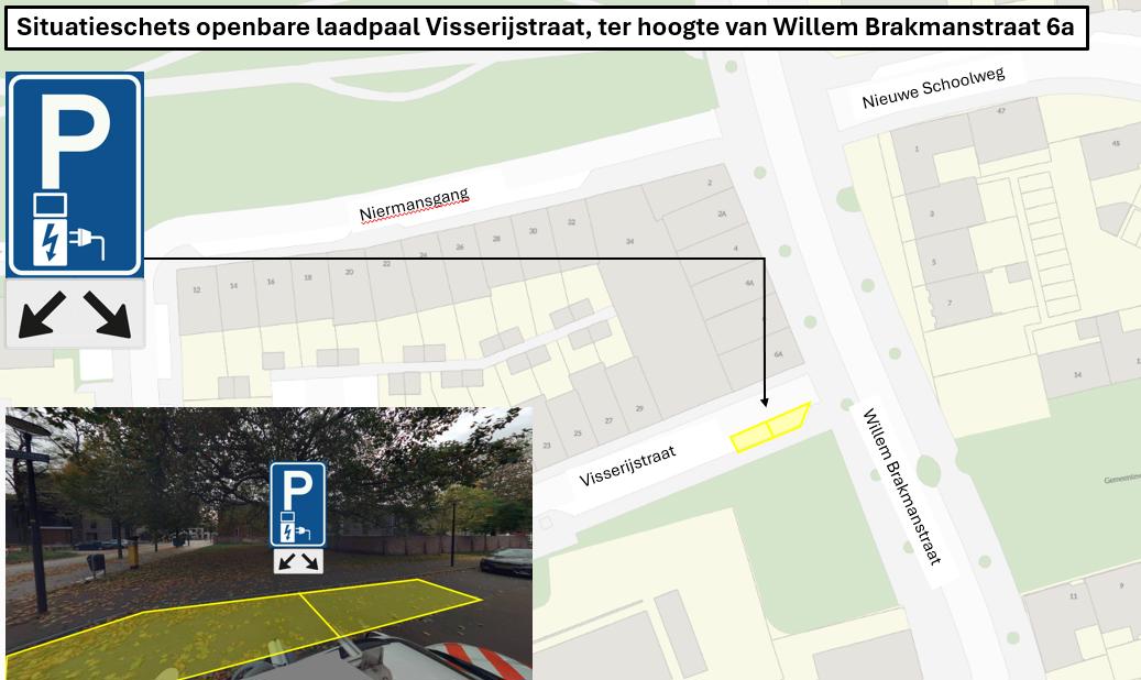 dat op basis van de hiervoor genoemde beleidsregel en de plankaart laadinfrastructuur een geschikte locatie is gevonden voor een laadvoorziening op de Visserijstraat ter hoogte van Willem Brakmanstraat 6a;