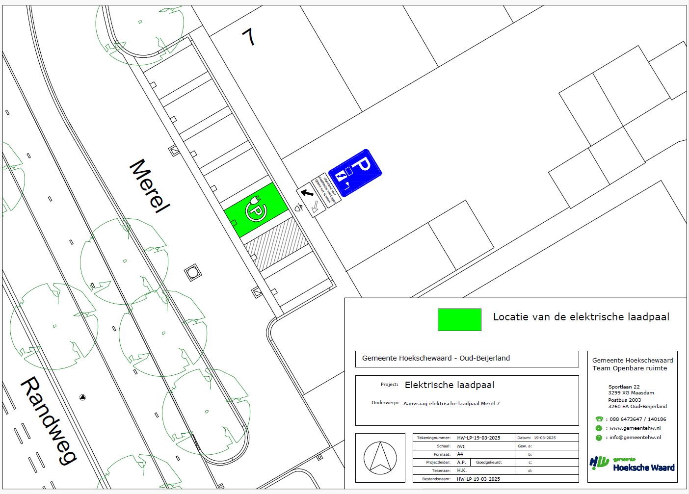 Twee parkeerplaatsen aan te wijzen voor het uitsluitend opladen van elektrische voertuigen, waarbij aanvankelijk slechts één parkeerplaats wordt geëffectueerd. Dit door middel van het plaatsen van het bord E8c van het RVV (Reglement Verkeersregels en Verkeerstekens 1990) voorzien van het onderbord met de tekst ” Uitsluitend voor elektrische voertuigen tijdens het opladen”.