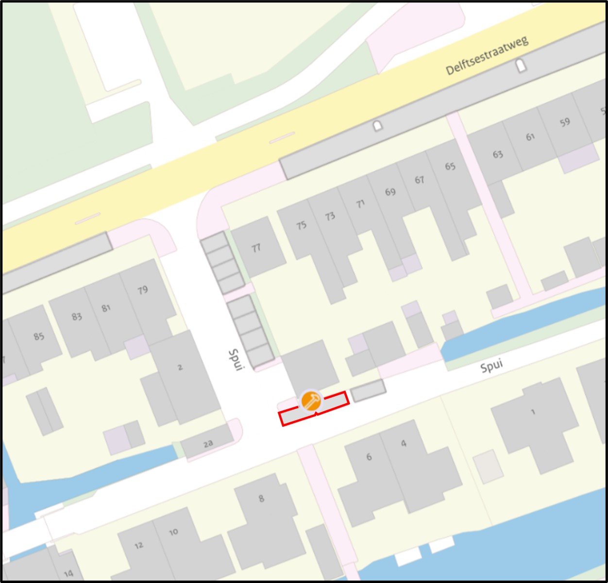 Naar aanleiding van een aanvraag voor een openbare laadpaal heeft EQUANS een locatievoorstel aan de gemeente voorgelegd voor een laadpaal met 2 oplaadplaatsen aan het Spui in Delft tegenover huisnummer 6. Deze locatie staat niet in het verkeersbesluit van 17-12-2020.