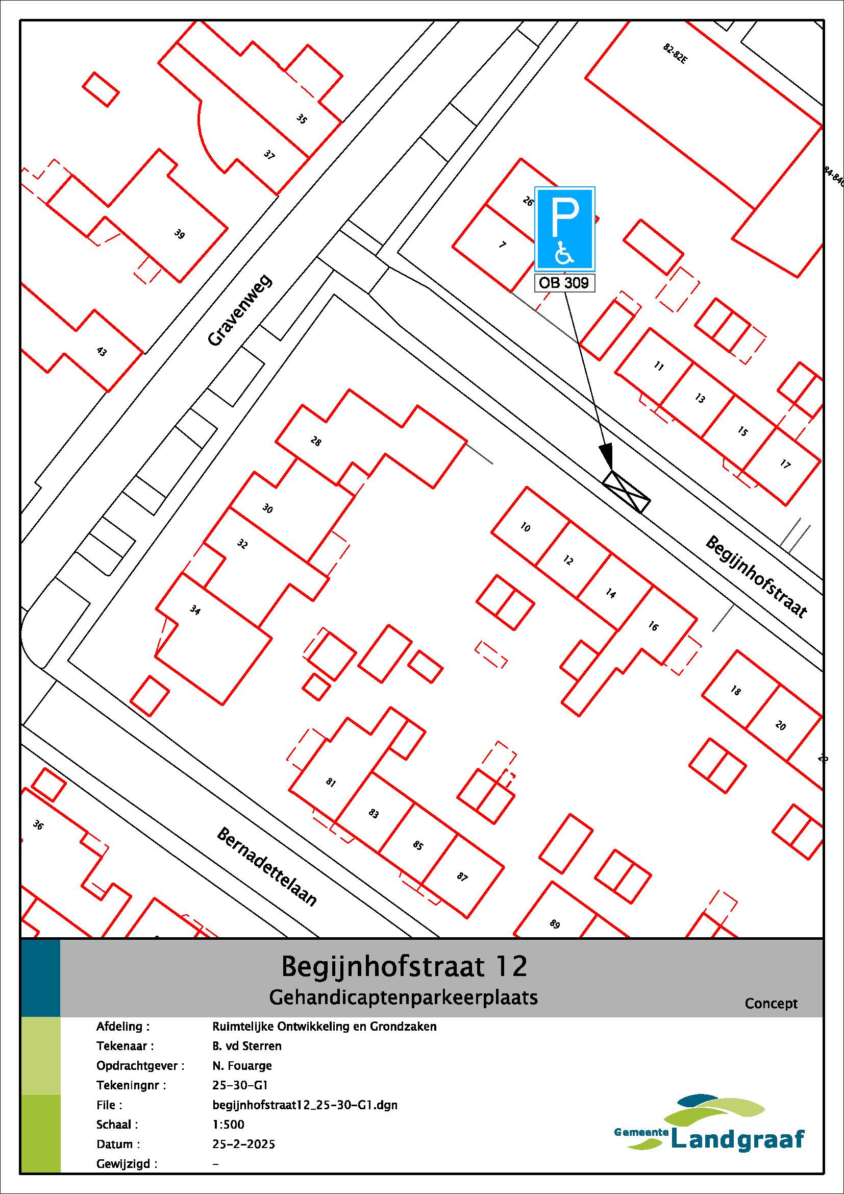 De gemeente heeft een verzoek ontvangen voor het aanwijzen en inrichten van een gehandicaptenparkeerplaats op kenteken nabij de Begijnhofstraat 12.