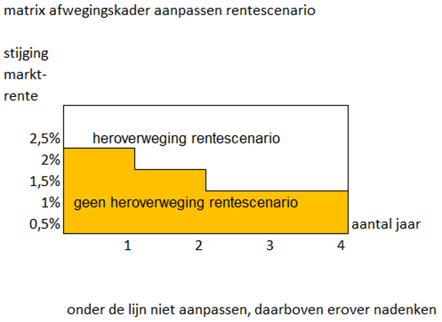 In de concretisering van dit beleidsuitgangspunt wordt het volgende richtsnoer voor het aanpassen van het rentescenario gebruikt: