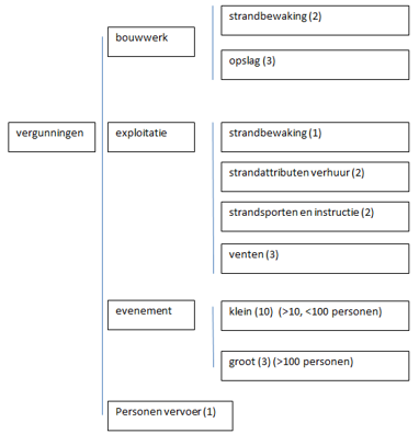 De exploitatievergunning voor het strand kent 4 varianten en van elk zijn er slechts enkele stuks: