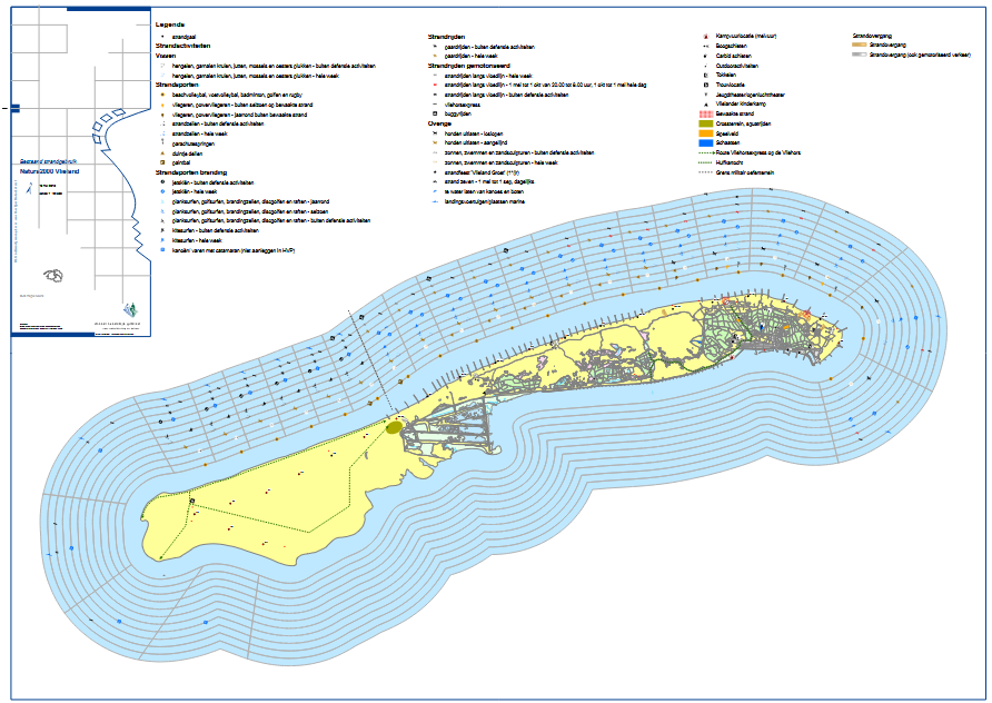 De kaart van Natura 20002 is opgesteld na inventarisatie en in samenspraak met diverse gebruikers van ons eiland. Natura 2000 wordt onze norm voor de zones op het stand en voor het strandgebruik aangaande activiteiten op het strand. De kaart is daar een prima hulpmiddel bij.
