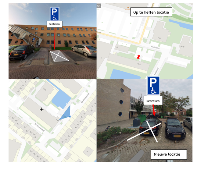 Aanvrager heeft een verzoek ingediend, met zaaknummer 1482574, om nabij de oude woning een gehandicaptenparkeerplaats op te heffen en nabij het nieuwe adres een parkeerplaats te reserveren als gehandicaptenparkeerplaats op kenteken.