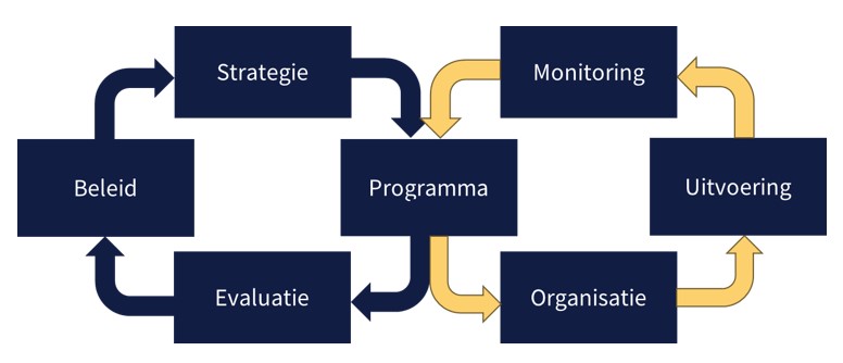 Uit de uitvoering komt informatie (zie de indicatoren in bijlage 2), die de deelnemers gebruiken om de beleidsinstrumenten uit de beleidscyclus, in te vullen of aan te passen.