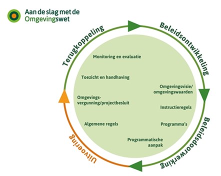 In de geest van de Omgevingswet gaat het erom dat de leefomgeving op een integrale manier wordt bestuurd met het oog op duurzame ontwikkeling, bewoonbaarheid van het land en verbetering van het leefmilieu. Dit vraagt samenhang tussen het beleid, de regels en de uitvoering. Deze samenhang wordt verbeeld door een gesloten beleidscyclus.
