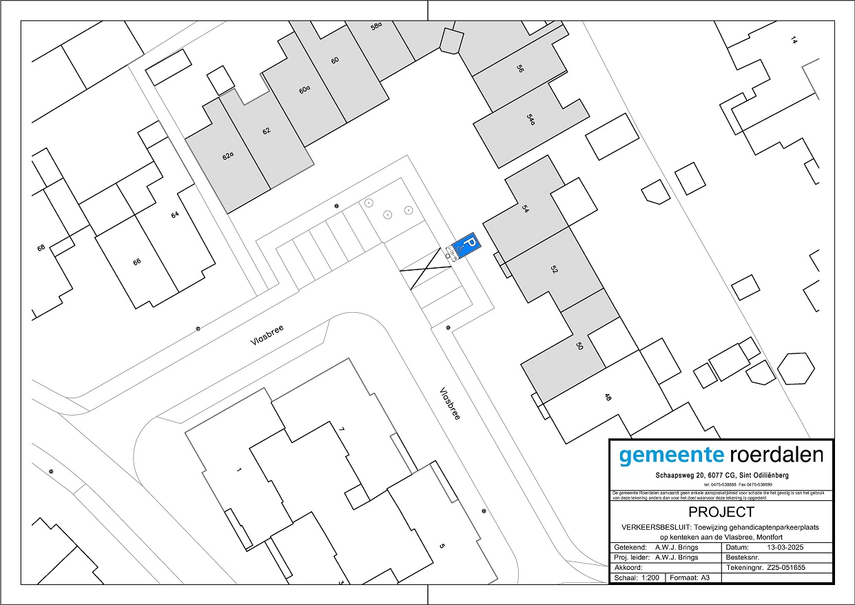 Verkeersbesluit: Toewijzing gehandicaptenparkeerplaats op kenteken aan de Vlasbree, Montfort