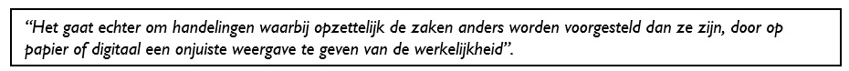Het begrip fraude als zodanig is niet gedefinieerd in het Wetboek van Strafrecht. Hierbij kan worden gedacht aan valsheid in geschrifte, oplichting, bedrog, benadeling van de overheid als schuldeiser of rechthebbende, corruptie, diefstal en/of verduistering.