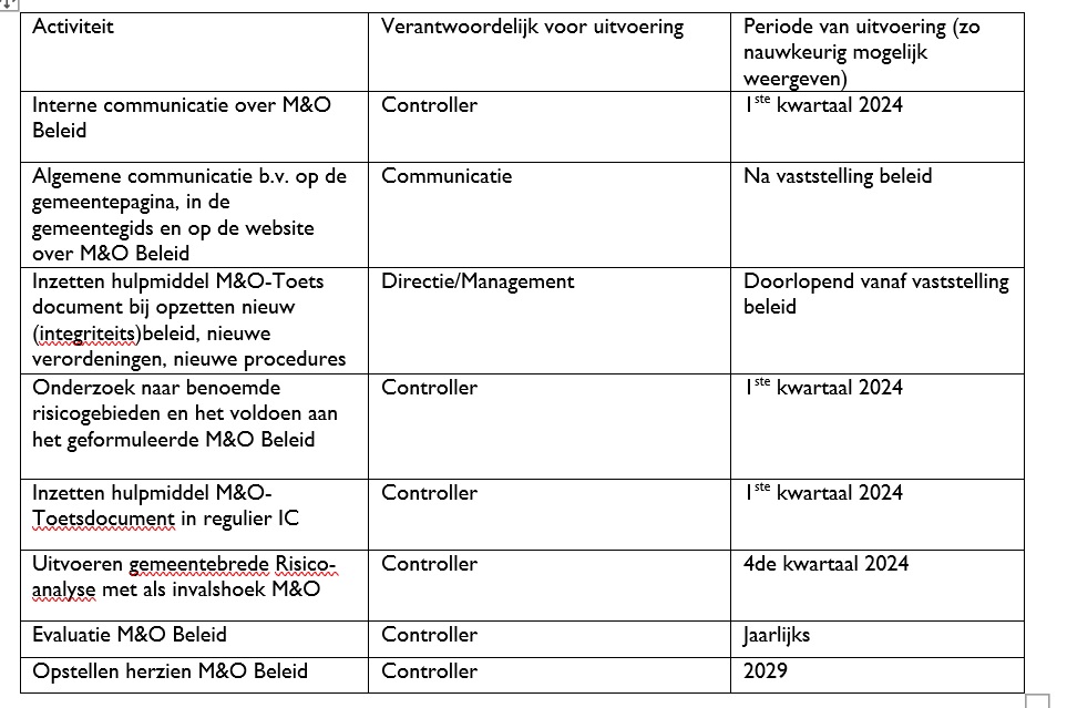 – Bij het opstellen van het integriteitsbeleid wordt rekening gehouden met M&O-gevoelige aspecten.