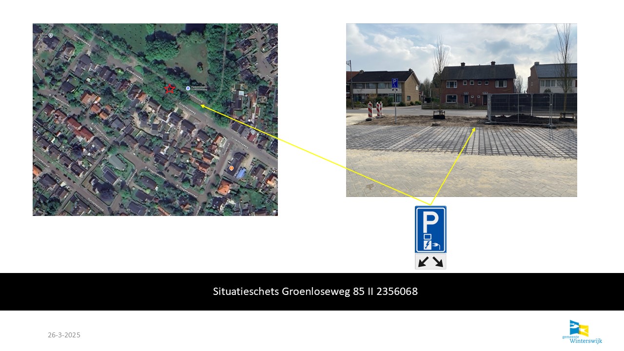 • De verkeersmaatregel vast te hebben gelegd op bijbehorende bijlage: Situatieschets Openbare Laadpaal Groenloseweg d.d. 26-03-2025