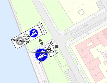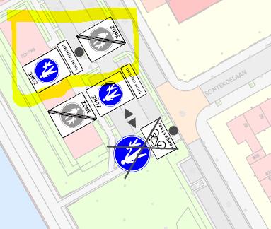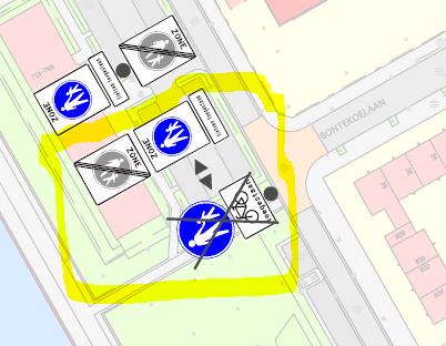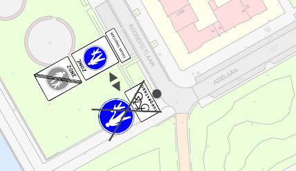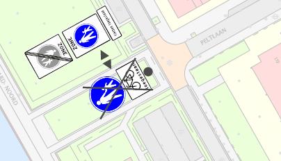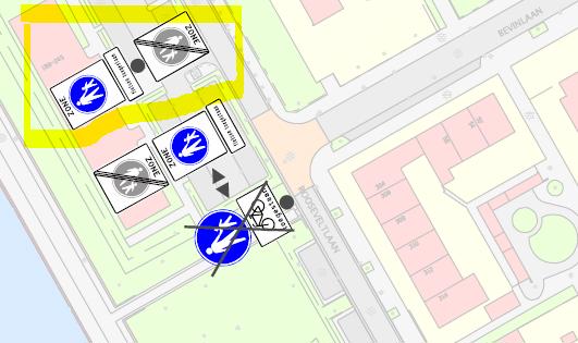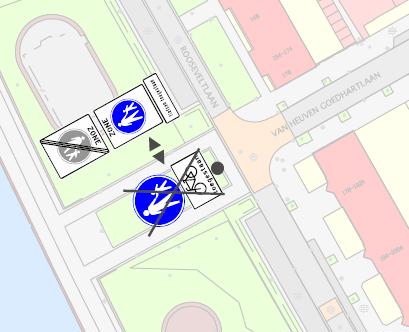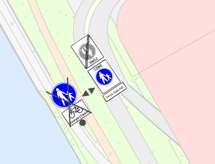 In te trekken G7 met onderbord “Fietsers toegestaan” en vast te stellen G7 zone begin en eind met onderbord “Fietsen toegestaan”
