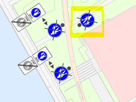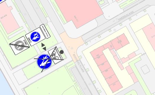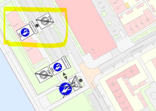 Rooseveltboulevard (ter hoogte van het appartementencomplex Rooseveltlaan huisnummers 623 tot en met 679 oneven en tegenover de Amerikalaan; wegvak: tussen/tegenover de Amerikalaan en tegenover de Battutalaan)