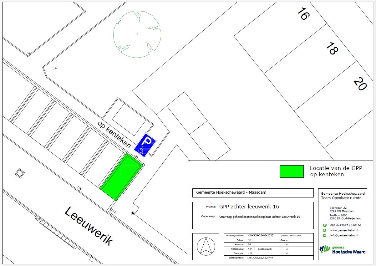 op het parkeerterrein achter de woning Leeuwerik 16 in Maasdam een gehandicaptenparkeerplaats op kenteken in te richten;