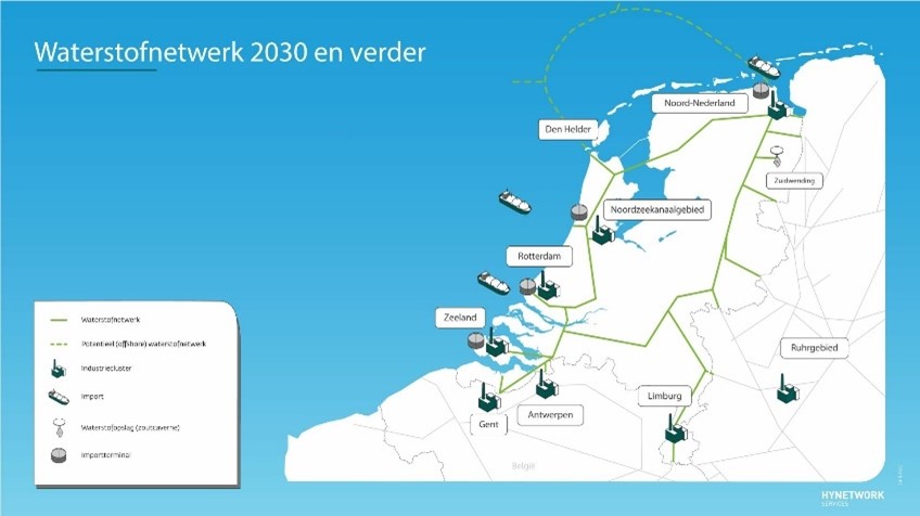 Het ministerie van Economische zaken en Klimaat (EZK) samen met Hynetwork services bereiden de aanleg van het waterstofnetwerk Zuidwest-Nederland voor. Het netwerk verbindt de grote industrieclusters in Nederland op het (inter-) nationale waterstofnetwerk. Met dit netwerk kunnen CO2-reductie doelstellingen uit het Parijsakkoord gehaald worden.