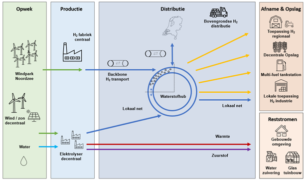 Gezien de variabiliteit van hernieuwbare energiebronnen kan de geproduceerde waterstof dienen als een opslagmedium voor overtollige energie, die later kan worden omgezet in elektriciteit wanneer dat nodig is. Dit is een nationale lijn die ook beschreven staat in het Nationaal Programma Energiesysteem. Voor de bedrijfszekerheid van het elektriciteits- en waterstofnet is opslag cruciaal.