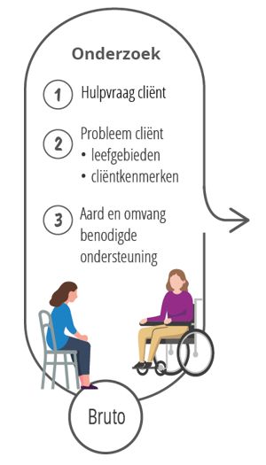 Tijdens het onderzoek bevraagt de Wmo-consulent de cliënt, voor zover nodig en gerelateerd aan het gebruik van het Normenkader Begeleiding, op drie aspecten: