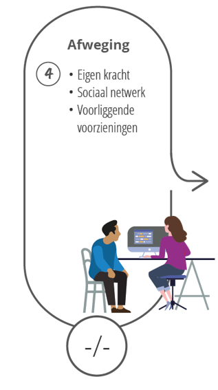 In hoofdstuk 4 beschrijven we stap 4 (conform de CRvB-uitspraak) van het proces, het onderzoeken van de eigen mogelijkheden van cliënt en netwerk en overige voorliggende oplossingen.