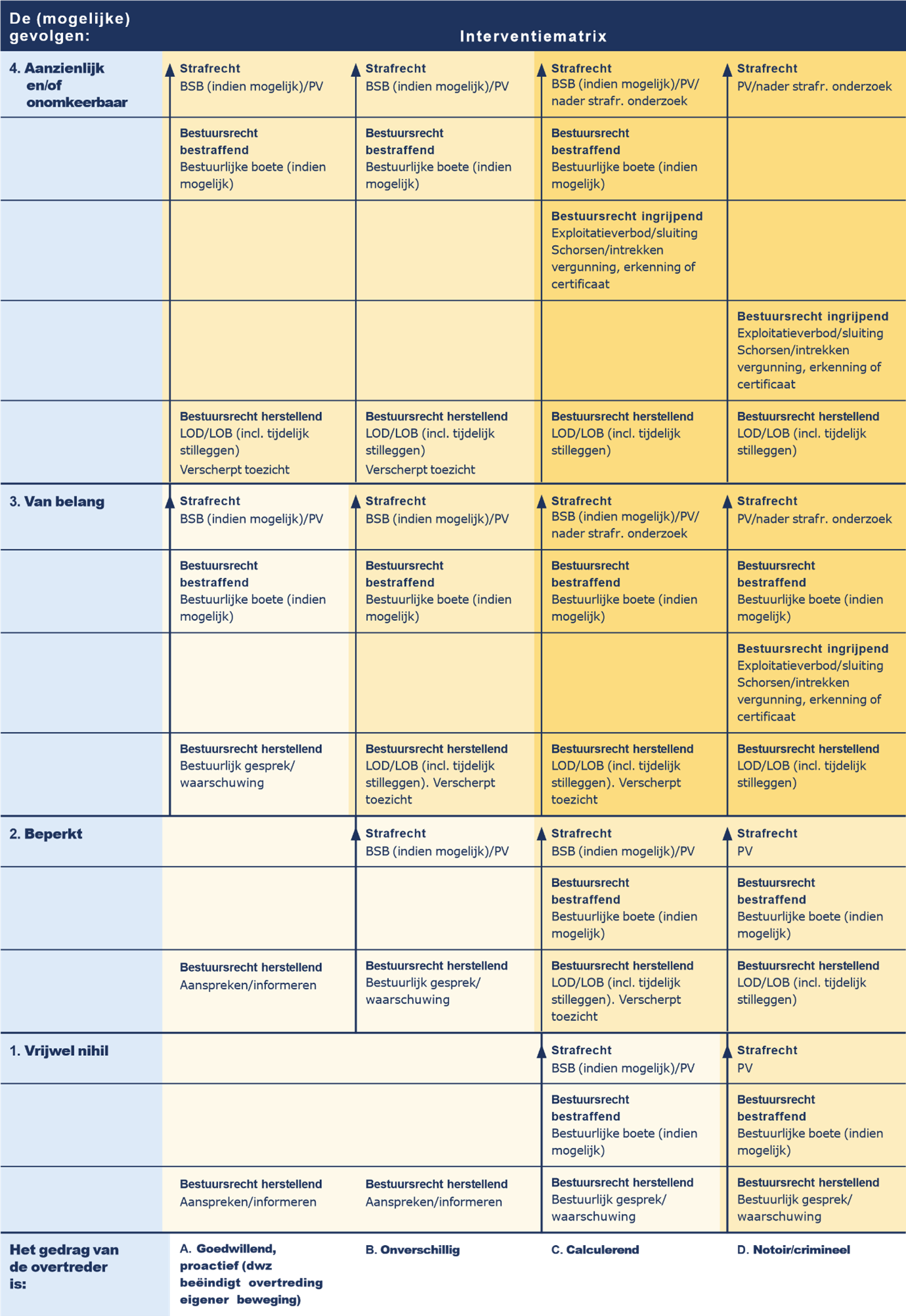 De handhaver gebruikt bij stap 4 de algemene of, indien beschikbaar en van toepassing, de domeinspecifieke interventiematrix. Dit werkt als volgt: