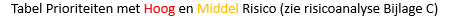 In de risicoanalyse zijn de meest voorkomende U&H-taken en activiteiten verdeeld in prioriteit hoog, gemiddeld of laag. De U&H-taken en activiteiten waarbij de risico’s het grootst zijn hebben de hoogste prioriteit gekregen.