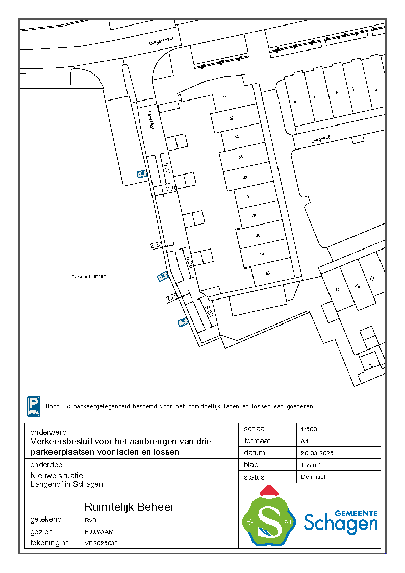 Gemeente Schagen- Verkeersbesluit aanwijzen laad- en losplaatsen nabij Langehof 11 t/m 18, Schagen.