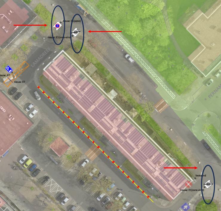 Vaststellen: Begin en einde parkeerverbodszone (bord E1 conform Bijlage 1 van het RVV 1990 met de aanduiding zone)