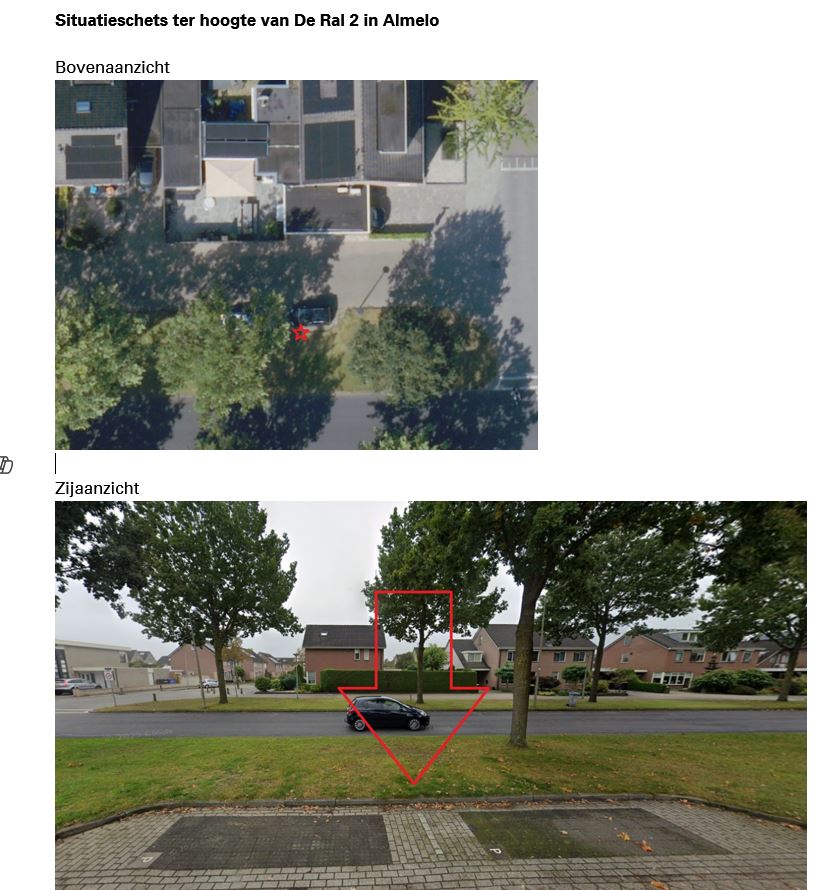 Deze locatie ter hoogte van De Ral 2 in Almelo staat niet op de plankaart. Deze locatie hebben wij toegevoegd aan de plankaart. Wij hebben hier rekening gehouden met het openbare karakter, de parkeerdruk en de zicht- en vindbaarheid.