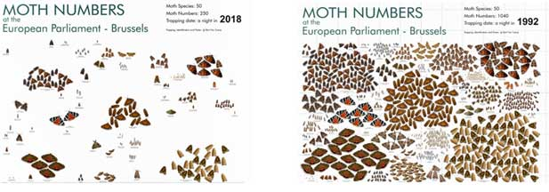 Biodiversiteit gaat over populaties die zichzelf in stand kunnen houden en niet dreigen uit te sterven, zoals het voorbeeld van de motten in Afbeelding 3. Daar is kwaliteit en omvang van de leefomgeving voor nodig.