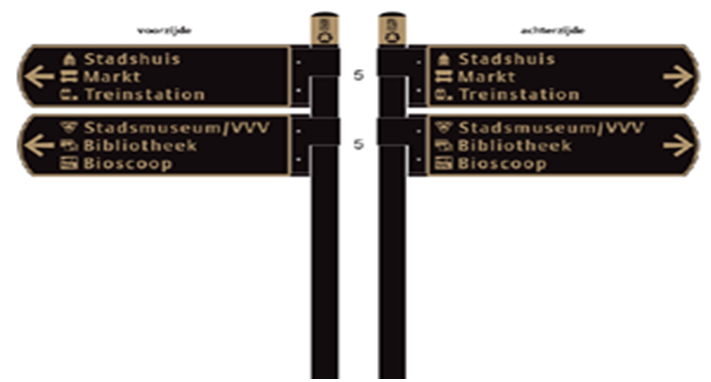In dit artikel is in het derde lid beschreven hoe de bewegwijzering er uit ziet. In de praktijk levert dit het volgende beeld op: