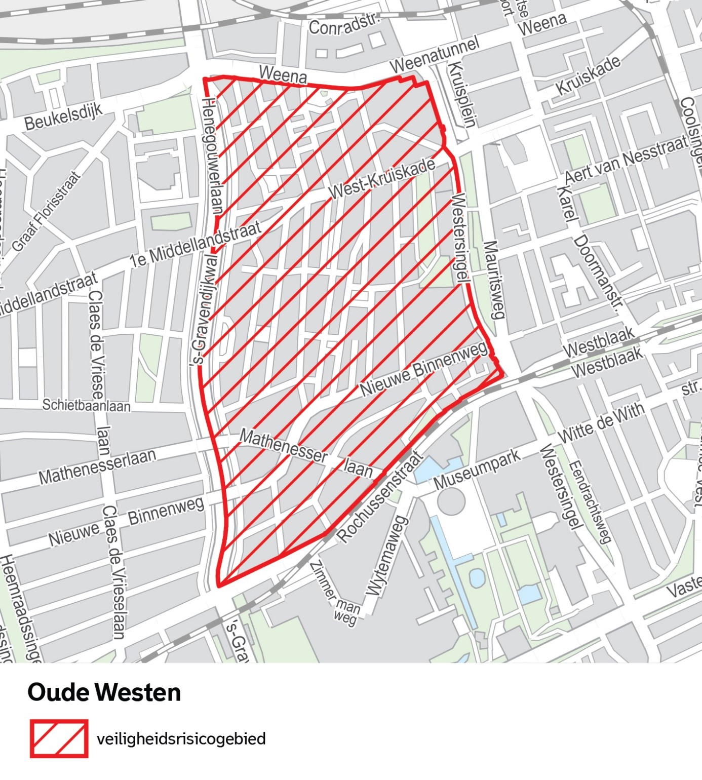 Op grond van artikel 2:76 van de Algemene plaatselijke verordening Rotterdam 2012 wordt het gebied Centrum, zoals aangegeven op de kaarten in bijlage 1, met inbegrip van de daarin gelegen voor het publiek openstaande gebouwen en daarbij behorende erven, wegen, oevers en aanwezige knooppunten van het openbaar vervoer, aangewezen als veiligheidsrisicogebied.