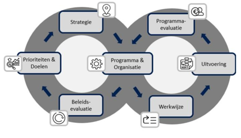 Monitoring en evaluatie vormen een structureel onderdeel van de beleidscyclus. Jaarlijks wordt in een uitvoeringsprogramma vastgelegd welke activiteiten worden uitgevoerd, hoe de voortgang wordt gemonitord en welke resultaten worden verwacht. Deze programma’s worden niet alleen geëvalueerd op effectiviteit, maar dienen ook als basis voor bijstelling van doelen en werkwijzen. Het jaarverslag en de evaluatie van het uitvoeringsprogramma dragen bij aan een verbeterde implementatie in de volgende cyclus.