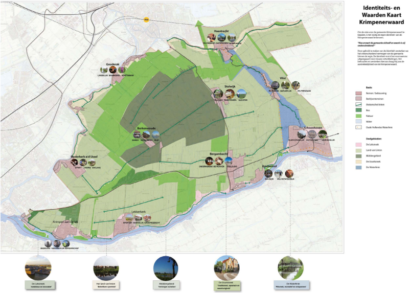 De gemeente Krimpenerwaard is een grote gemeente, gelegen tussen drie rivieren, dicht bij stedelijk gebied en is onderdeel van de Oude Hollandse Waterlinie. Dit maakt de gemeente gevarieerd met verschillende identiteiten. Binnen de Omgevingsvisie van de gemeente Krimpenerwaard is onderscheid gemaakt in een viertal ‘deelgebieden’ met elke hun eigen waarden. Dit betreft: