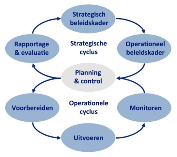 BIG-8 bestaat uit een dubbele plan-do-check-act cyclus, die samen de beleidsvormende (strategische) en uitvoerende (operationele) cyclus met elkaar verbinden.