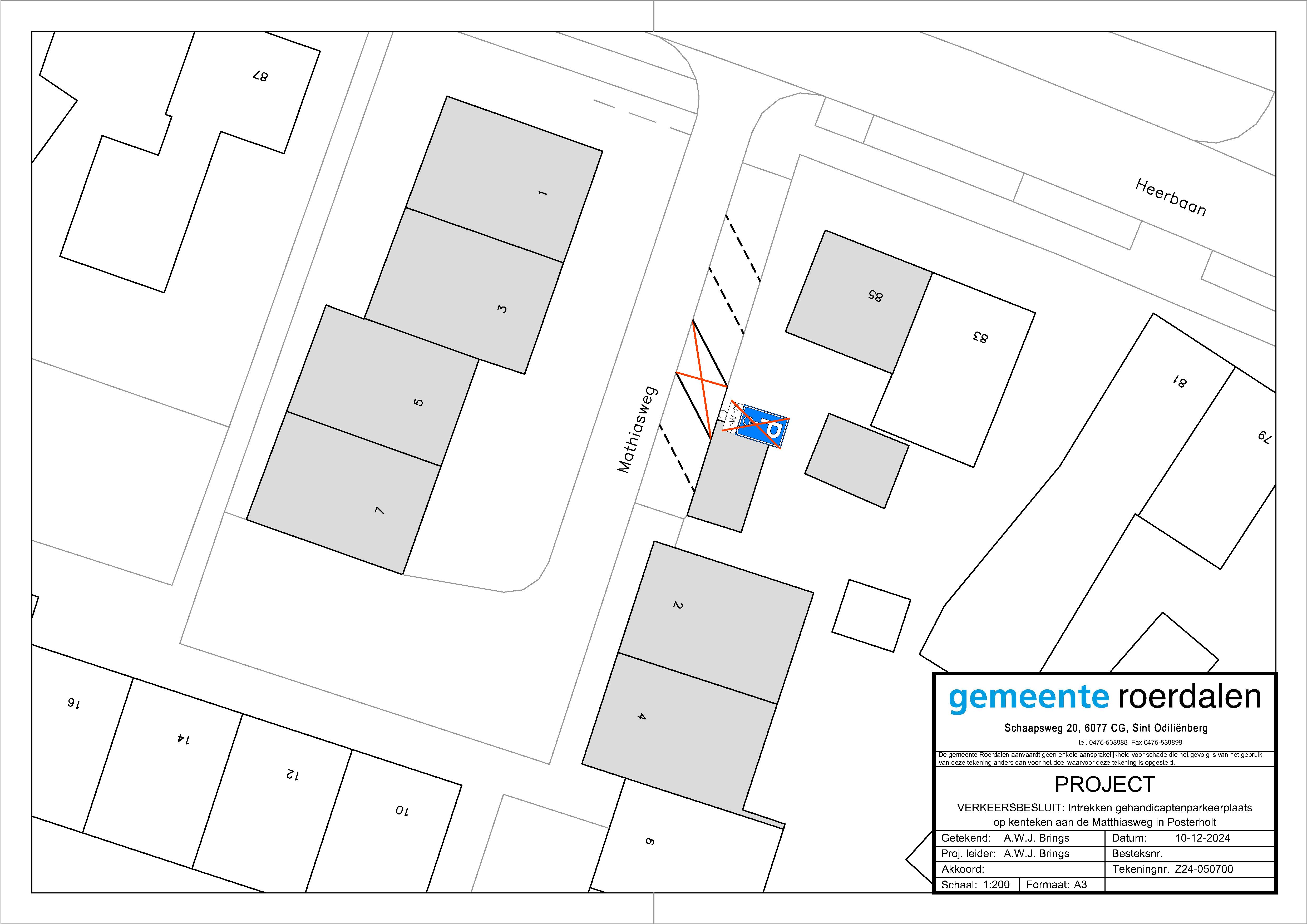 Verkeersbesluit: Intrekken gehandicaptenparkeerplaats op kenteken aan de Matthiasweg, Posterholt