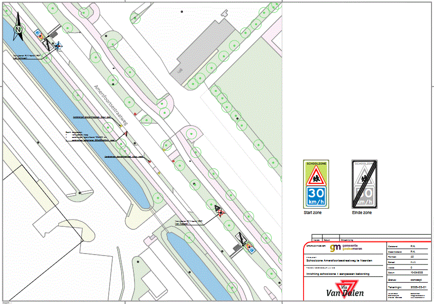 Op de Amersfoortsestraatweg te Naarden worden diverse maatregelen genomen om de verkeersveiligheid rondom de (tijdelijke) Vondelschool te verbeteren. De maatregelen maken onderdeel uit van een in te stellen schoolzone volgens eerder vastgesteld beleid. Voor één van deze maatregelen is het nemen van een verkeersbesluit noodzakelijk.