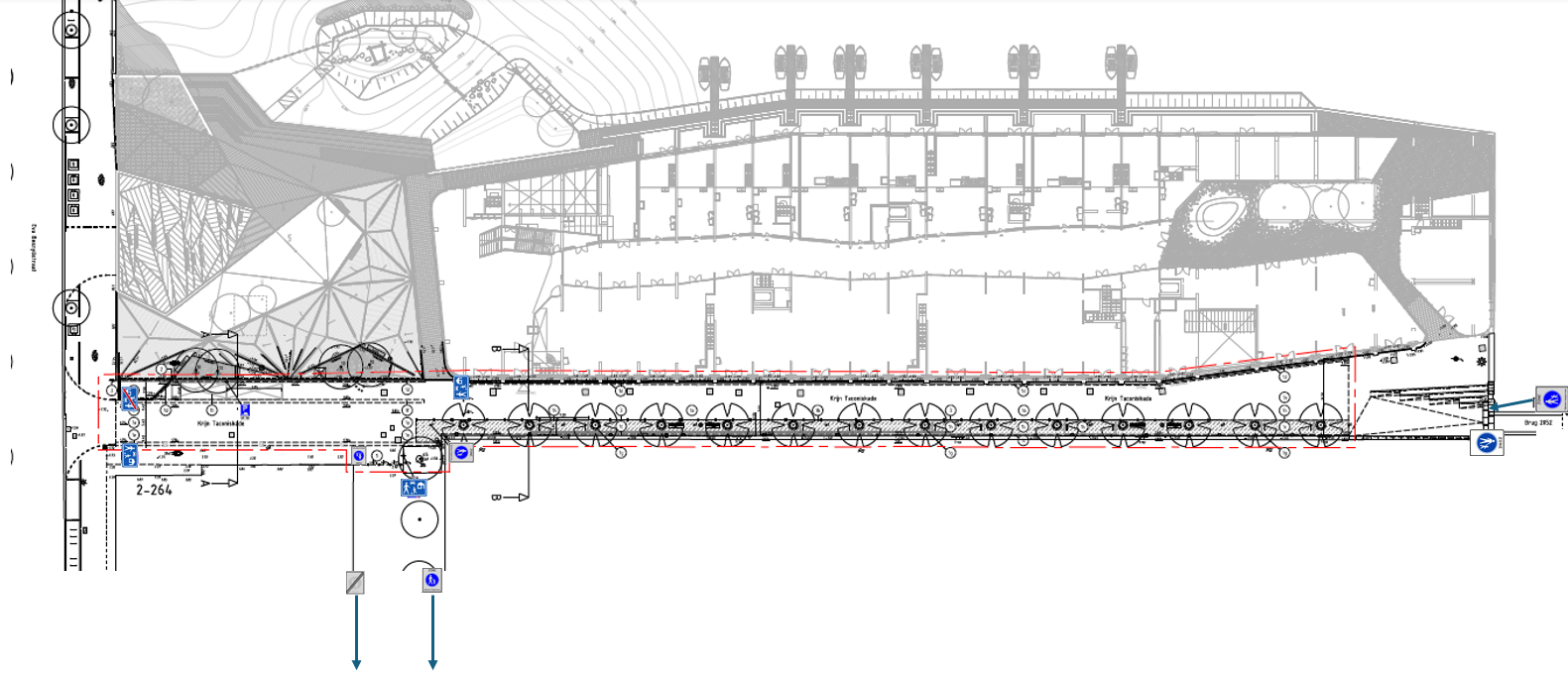 het wegdeel dat in het verlengde van het hierboven omschreven wegdeel ligt en ligt langs de kadekant van de Krijn Taconiskade alsook het wegdeel dat vanuit zuidoostelijke kant haaks aansluit en ook langs de kadekant van de Krijn Taconiskade ligt, al een uitstraling heeft van een voetgangerszone en het omwille van de verkeersveiligheid en duidelijkheid van belang is om deze wegdelen ook als zodanig te bestemmen en dat het ook van belang is om fietsen wel toe te staan op deze twee wegdelen;