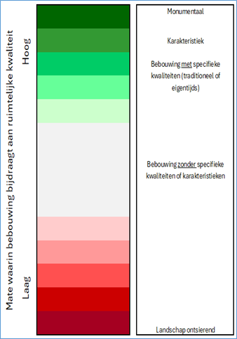 Voor het plaatsen van gebouwen in de juiste categorie zijn de kenmerken van het gebouw bepalend, alsmede de leeftijd en historie. In bijlage 2 zijn vijf categorieën opgenomen: