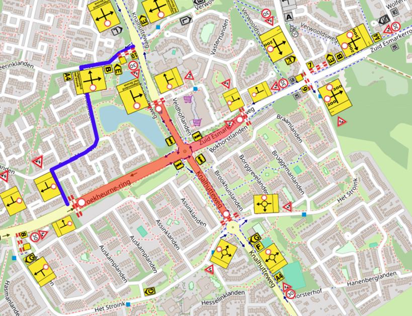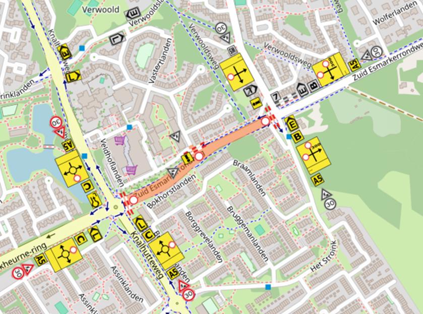 dat deze fasering inhoudt dat steeds een ander deel van de Knalhutteweg, Vrielinklanden, Zuid Esmarkerrondweg en Broekheurne-ring afgesloten is;