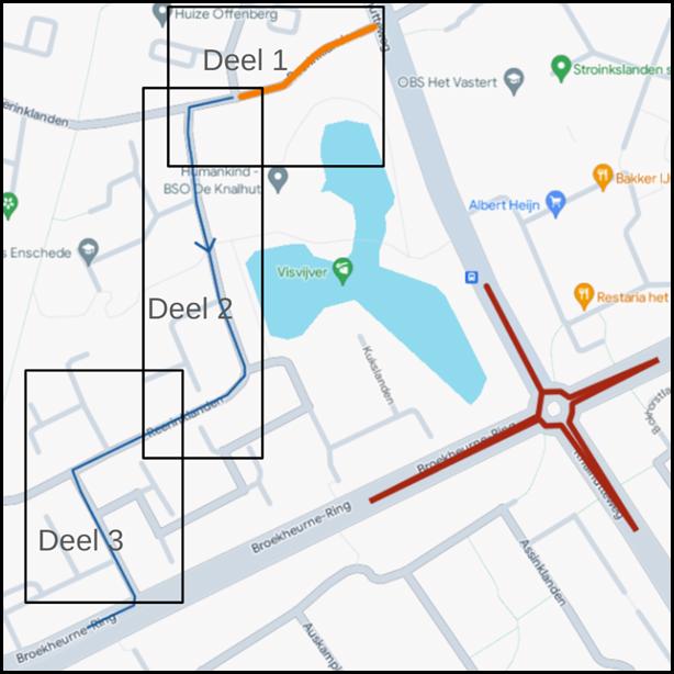 dat deze omleidingsroute loopt over de Reerinklanden, vanuit de richting van de Knalhutteweg naar de Broekheurne-Ring, in één (zuidelijke) richting;