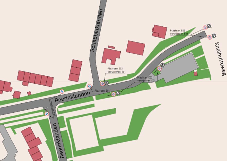 dat het noodzakelijk is om op de Reerinklanden, tussen de Knalhutteweg en de Schabbinklanden aan beide zijden van de rijbaan een verbod stil te staan in te stellen door middel van het plaatsen van borden E2 van bijlage 1 van het RVV 1990, aan beide zijden van de rijbaan;