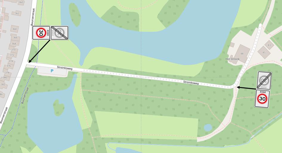 dat op de Stroinksweg nog een maximumsnelheid van 50 km/u geldt;