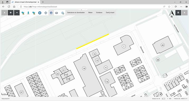 Het aanbrengen van gele onderbroken belijning langs de rijweg tegenover de nummers 11-19 conform de bij dit besluit behorende situatietekening.