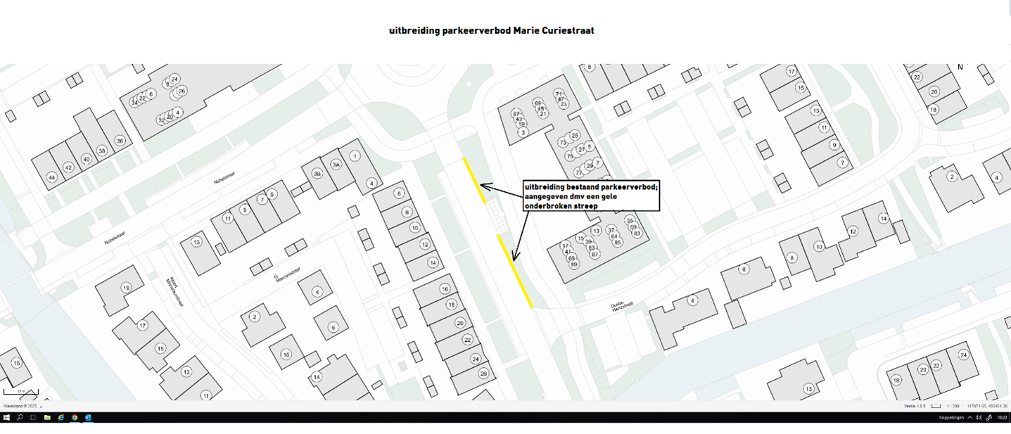Op de Marie Curiestraat het bestaande parkeerverbod uit te breiden over het gedeelte van de Marie Curiestraat gelegen tussen de oversteek Nobellaan en de Gustav Hertzstraat