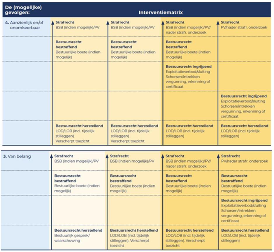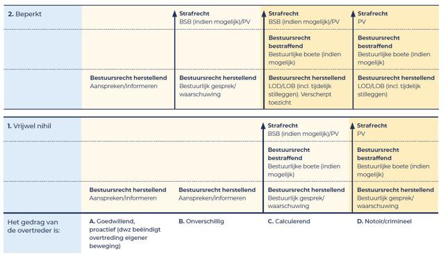 Welke bestuursrechtelijke interventie is in dit geval het meest geschikt? Het antwoord op deze vraag hangt af van de omstandigheden van het geval, zoals de aard en ernst van de overtreding, kenmerken van de overtreder en de omstandigheden waaronder de overtreding is gepleegd of ontstaan.